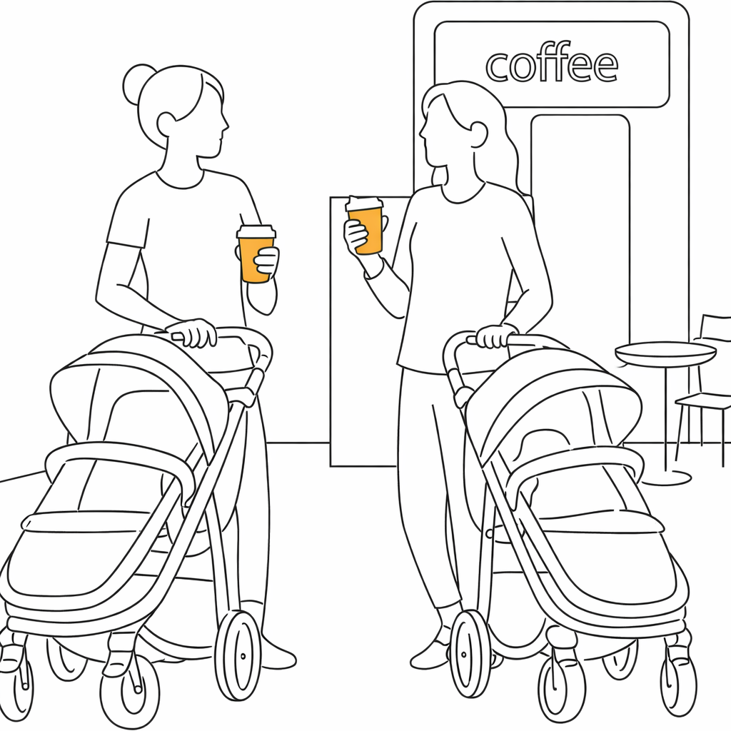 We create space for just that conversation, while keeping in mind the space for the strollers.