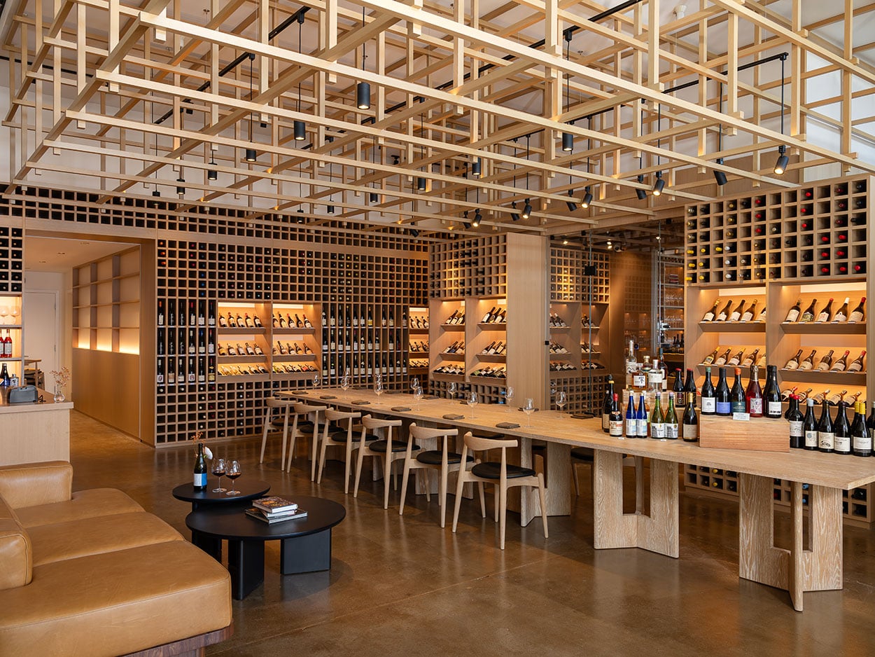 The design embraces simplicity and elegance, with natural wood finishes and thoughtfully placed lighting to create a welcoming atmosphere. The space provides the perfect setting to explore the depth of California’s wine legacy, offering a curated selection of rare and celebrated wines, including verticals from Eisele Vineyards, BV Georges de Latour, and Charles Krug, alongside more accessible bottles from iconic California producers.